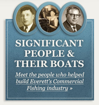Although not as large as the lumber and shingle industry, Everett’s commercial fishing industry was an integral part of the waterfront’s economic and physical growth. Croatians and Norwegians were among the earliest arrivals, and would become Everett’s pioneer commercial fishermen. Everett was also home to many other fishing families from a broad range of heritages. Fishing today remains a visible part of the waterfront, with more than 30 commercial fishing boats as of 2012.