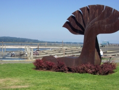 The distinctive steel sculpture, located just south of the Port of Everett Boat Launch, was Everett’s first piece of public art when it was formally dedicated on July 8, 1976. However, Surf II was initially installed on the east side of Colby Avenue close to California Street in downtown Everett.