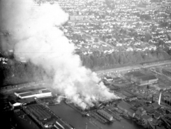 The North Waterfront has had no major fires for more than four decades. In the earlier years, however, there were truly spectacular blazes. Fires at Jamsion Lumber and Shingle Company in 1928, Clough-Hartley Shingle Mill in 1937, Pilchuck Shingle and Jamison, again, in 1967, were among the most damaging.